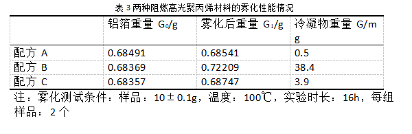 2.2 兩種阻燃高光聚丙烯材料的霧化性能情況