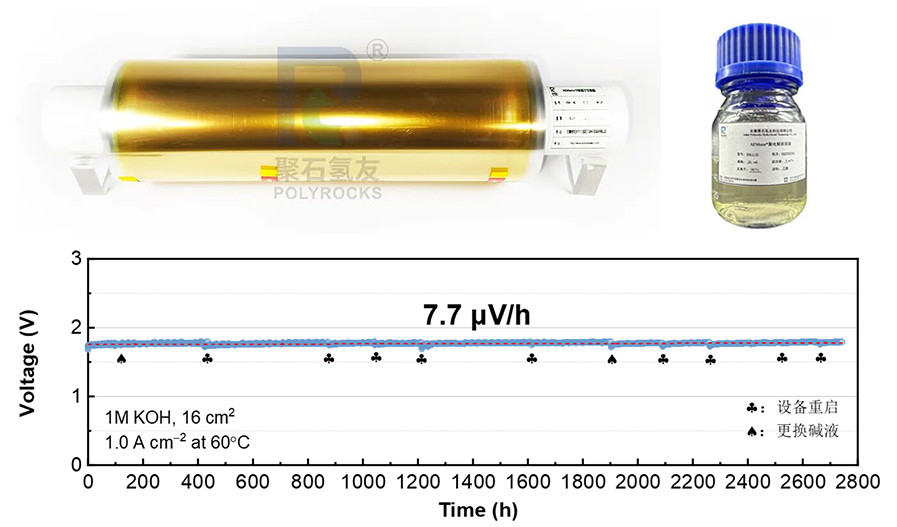 恒電流長(zhǎng)期運(yùn)行測(cè)試顯示,該組合電壓增長(zhǎng)率不到 10μV/h,長(zhǎng)期穩(wěn)定性出色。在電解效率、動(dòng)態(tài)響應(yīng)、長(zhǎng)期穩(wěn)定性三大指標(biāo)上,聚石 AEM 膜表現(xiàn)卓越,樹立行業(yè)新標(biāo)桿。