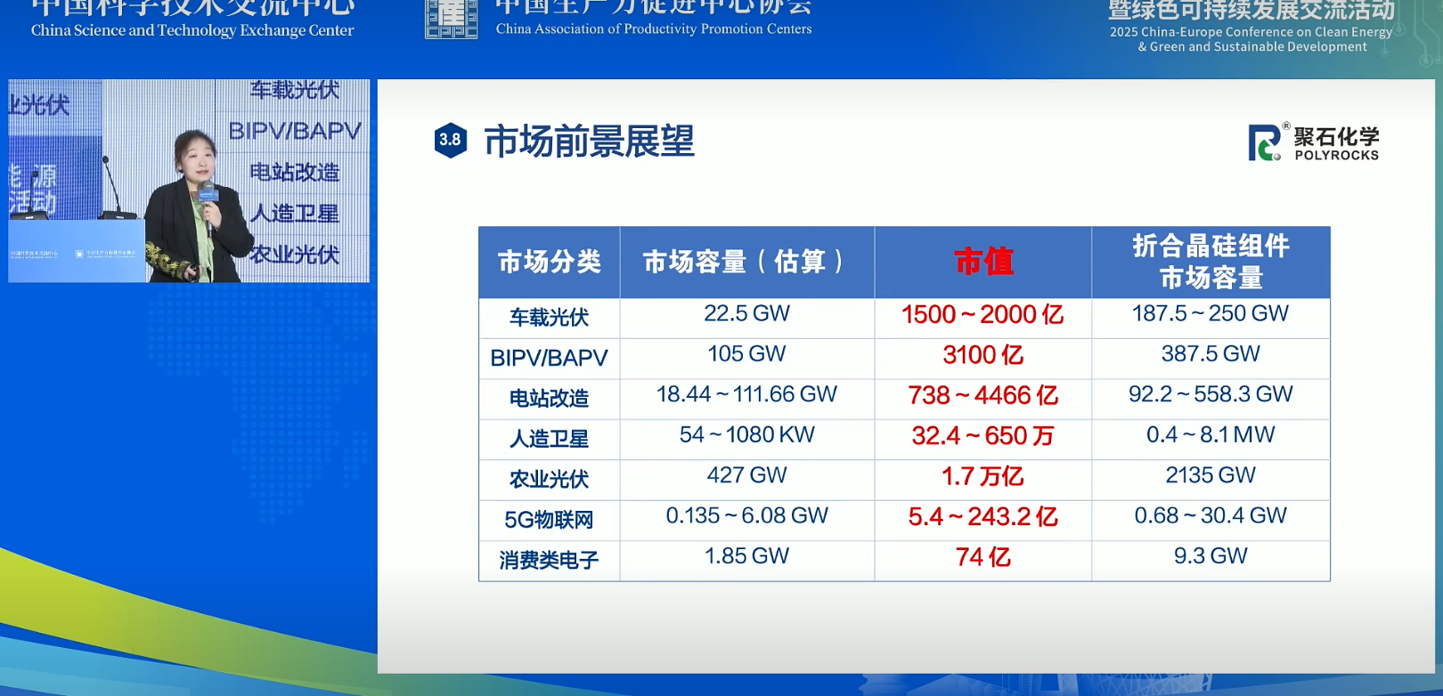 在大會(huì)主旨報(bào)告環(huán)節(jié),米蘭體育鈣鈦礦項(xiàng)目營(yíng)銷負(fù)責(zé)人閆瓊女士發(fā)表主題演講,介紹了公司在新型光伏材料領(lǐng)域的最新成果——柔性鈣鈦礦光伏組件,并深入分析了其在全球能源轉(zhuǎn)型背景下的市場(chǎng)前景。