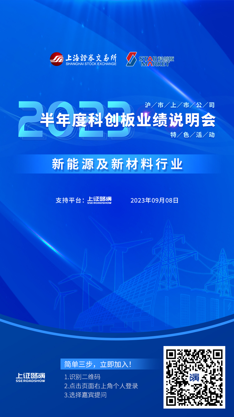 為便于廣大投資者更全面深入地了解公司2023年半年度經營成果、財務狀況、發展理念,公司參與了由上海證券交易所主辦的2023年半年度新能源及新材料行業集體業績說明會,公司將針對2023年半年度的經營成果及財務指標的具體情況與投資者進行互動交流和溝通,在信息披露允許的范圍內就投資者普遍關注的問題進行回答。誠邀各位投資者參與。