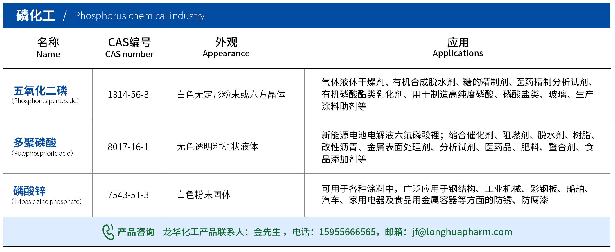 產品介紹:磷化工主要有多聚磷酸和五氧化二磷等產品,公司通過了ISO9001、ISO45001及ISO14001認證。