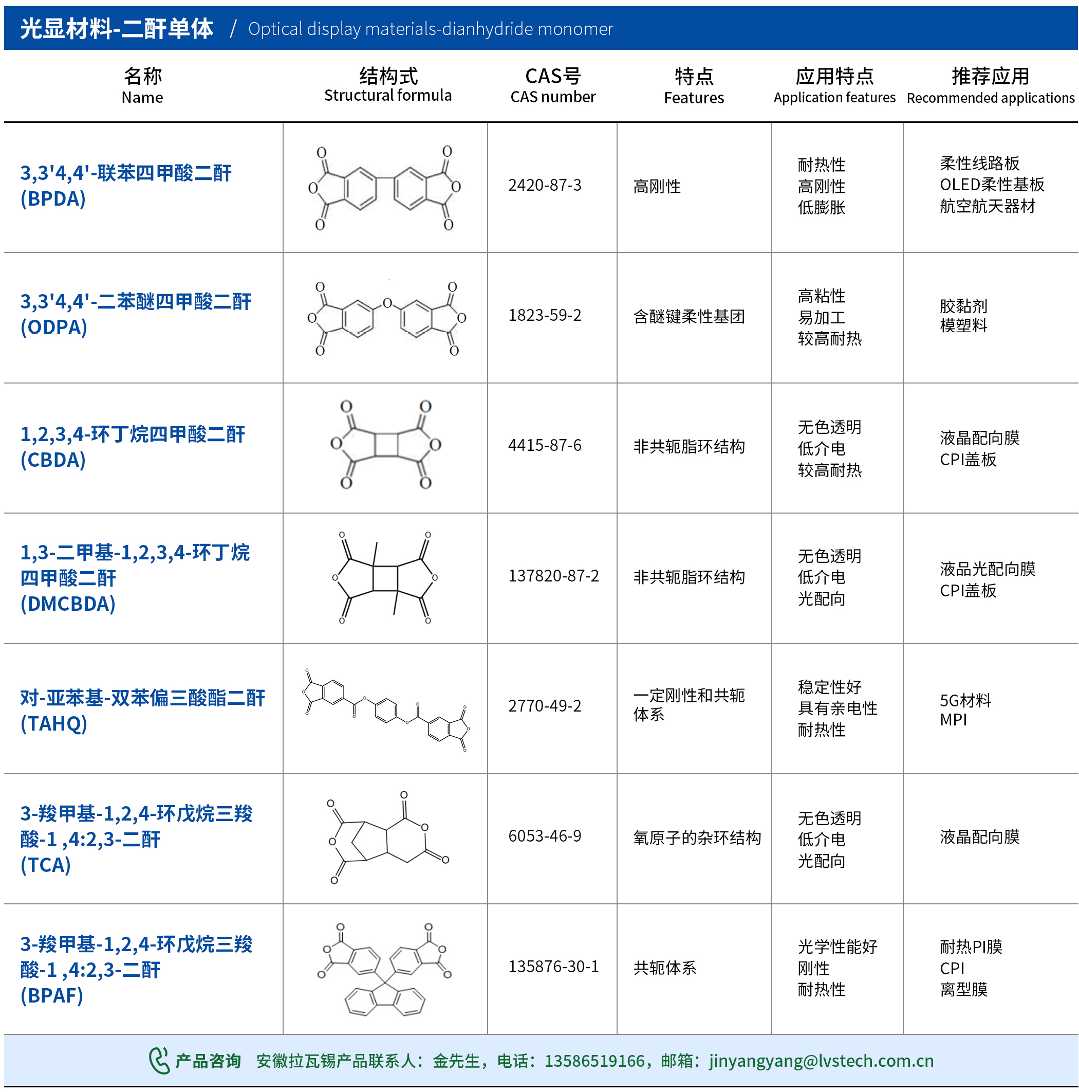 主要用途:柔性電路板、航空航天器材、液晶配向膜、CPI蓋板