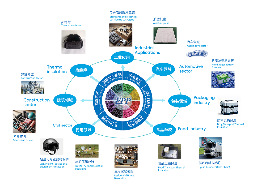 主要用途:工業應用、汽車領域、包裝領域、食品包裝、民用領域、建筑領域、熱絕緣